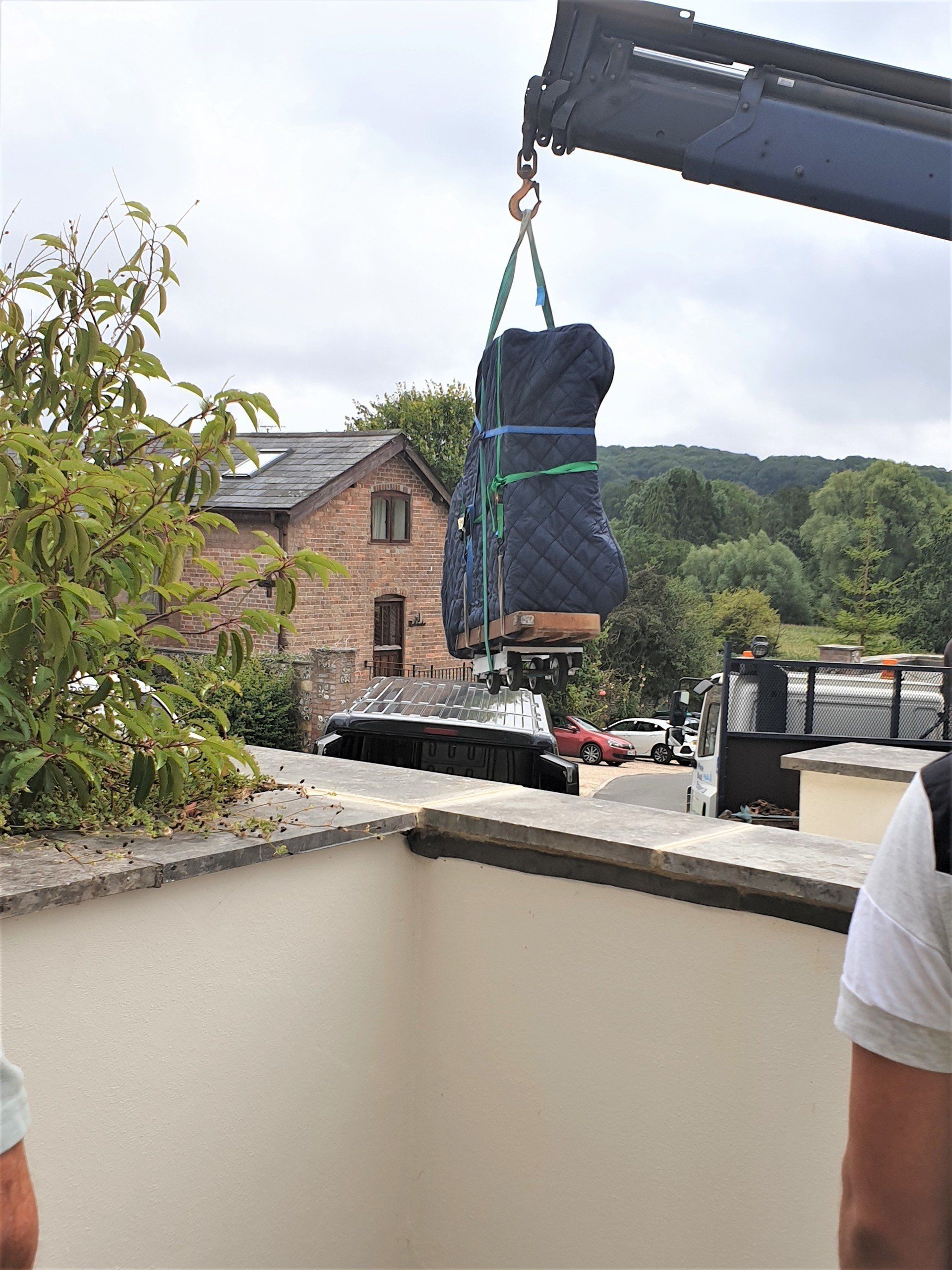 Grand Piano by crane through very tight window in Dorchester